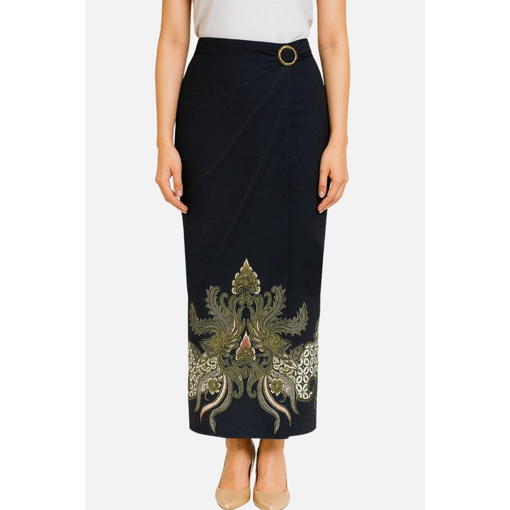 Odza Set Kemeja Rok Lilit Batik Couple Pria Wanita Lengan Pendek Kebaya Jumputan Hitam Naratama Motif Setelan